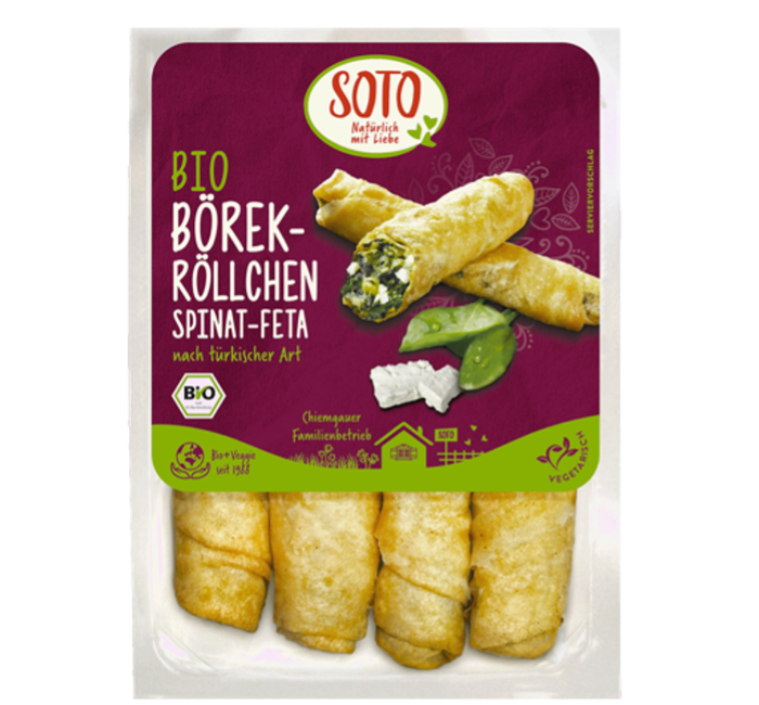 Seit 1988 stellt die organic veggie food GmbH unter der Marke SOTO vegane und vegetarische Convenience-Spezialitäten aus 100% biologischen Zutaten her. Die international inspirierte Produktvielfalt umfasst knusprige Frühlingsrollenorientalische Falafel, trendige Burger, buntes Fingerfood und individuell gefüllte Teigtaschen. Für das Familienunternehmen aus dem bayrischen Chiemgau ist der Geschmack stets die höchste Priorität, dabei verzichtet es bewusst auf Aromen sowie künstliche Zusatz- und Konservierungsstoffe bei der Herstellung seiner einzigartigen Produkte. Neben modernsten Produktionsanlagen werden auch heute noch viele Arbeitsschritte mit Sorgfalt und Geschick in Handarbeit ausgeführt. Nachhaltigkeit ist fest in der Unternehmensphilosophie verankert – von der bevorzugten Verwendung regionaler Bio-Rohstoffe bis hin zu ressourcenschonenden Prozessen. Mit diesem Engagement setzt SOTO Maßstäbe in der Herstellung hochwertiger pflanzlicher Lebensmittel. Für Genuss mit gutem Gewissen.